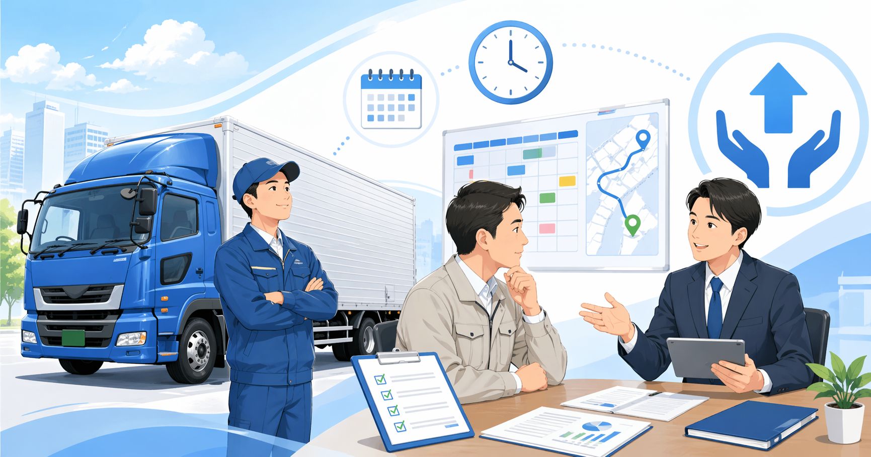 違反が発覚した場合の影響は、労基署からの是正勧告にとどまらず、運輸局による車両使用停止・事業停止処分、さらには荷主からの取引停止にまで及びます。一方で、労務管理体制を整えることは、ドライバーの定着率向上や安全運行、ひいては運賃交渉力の強化にも直結します。